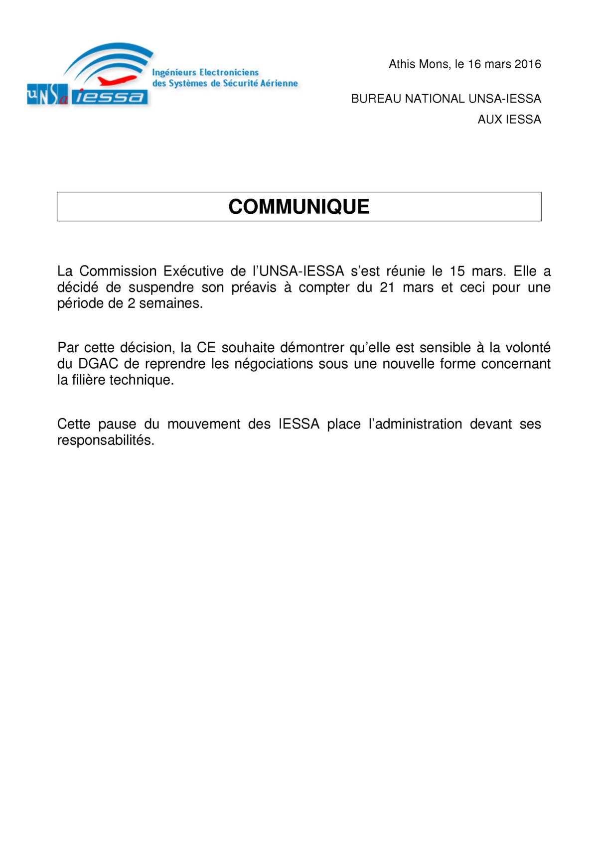 View Larger Image Suspension préavis By admin5313|2016-03-16T16:50:25+00:0016/03/2016|National|Commentaires fermés sur Suspension préavis Share This Story, Choose Your Platform! FacebookXBlueskyRedditLinkedInWhatsAppTelegramTumblrXingEmailCopy Link About the Author: admin5313 Related Posts GT Effectifs IESSA Gallery GT Effectifs IESSA AVE Printemps 2026 Gallery AVE Printemps 2026 Le conseil d’état censure la dgac Gallery Le conseil d’état censure la dgac Campagne de mobilité FIDELO 2026-1 Gallery Campagne de mobilité FIDELO 2026-1