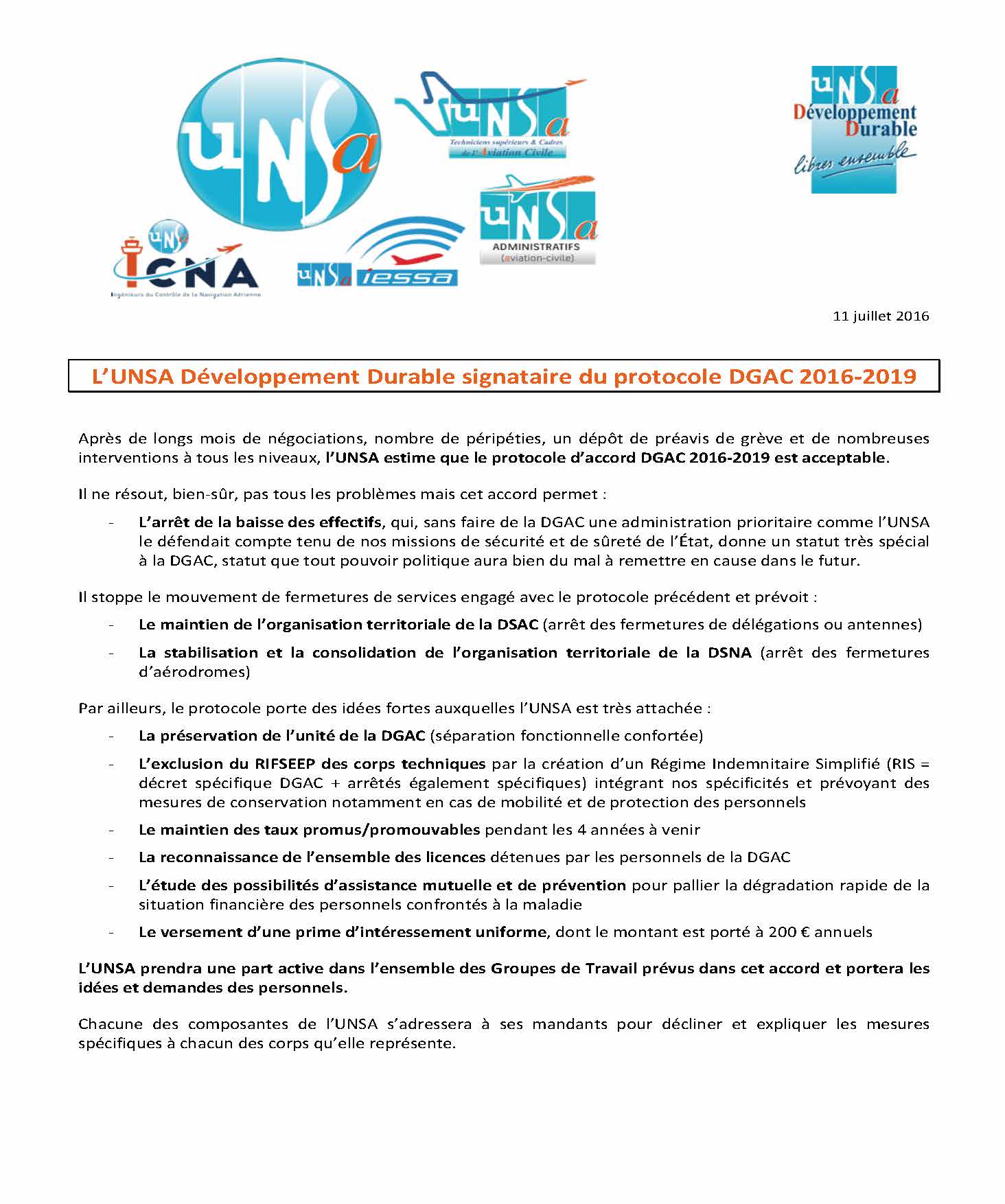 L’UNSA signe le protocole