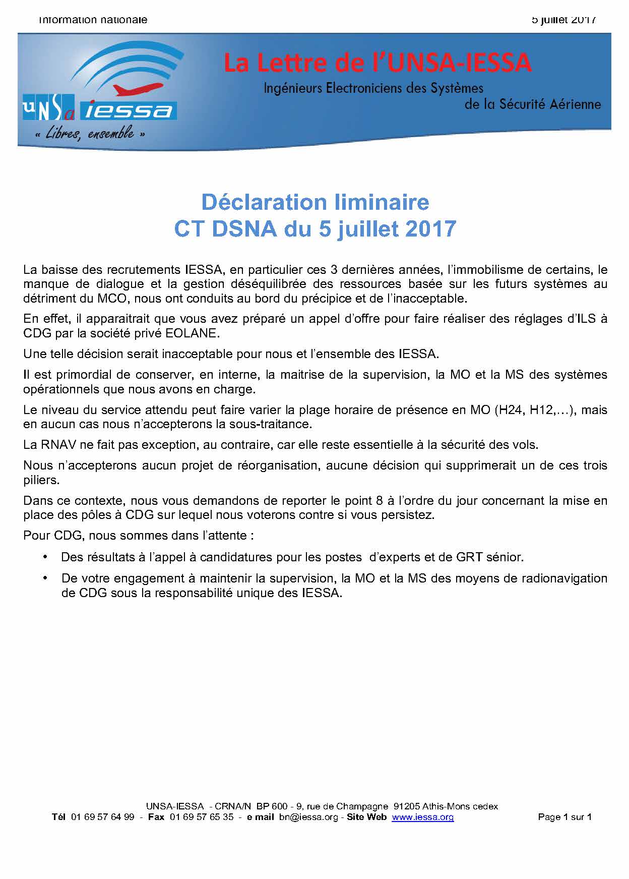 By admin5313|2017-07-05T10:35:42+00:0005/07/2017|National|Commentaires fermés sur Déclaration liminaire CT DSNA